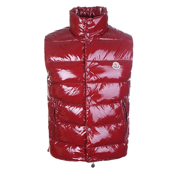 Moncler Sleeveless Vest For Men Smooth Shiny Fabric Red
