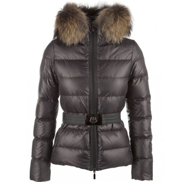 Moncler Angers Womens Jackets Decorative Belt Hooded Dark Gray